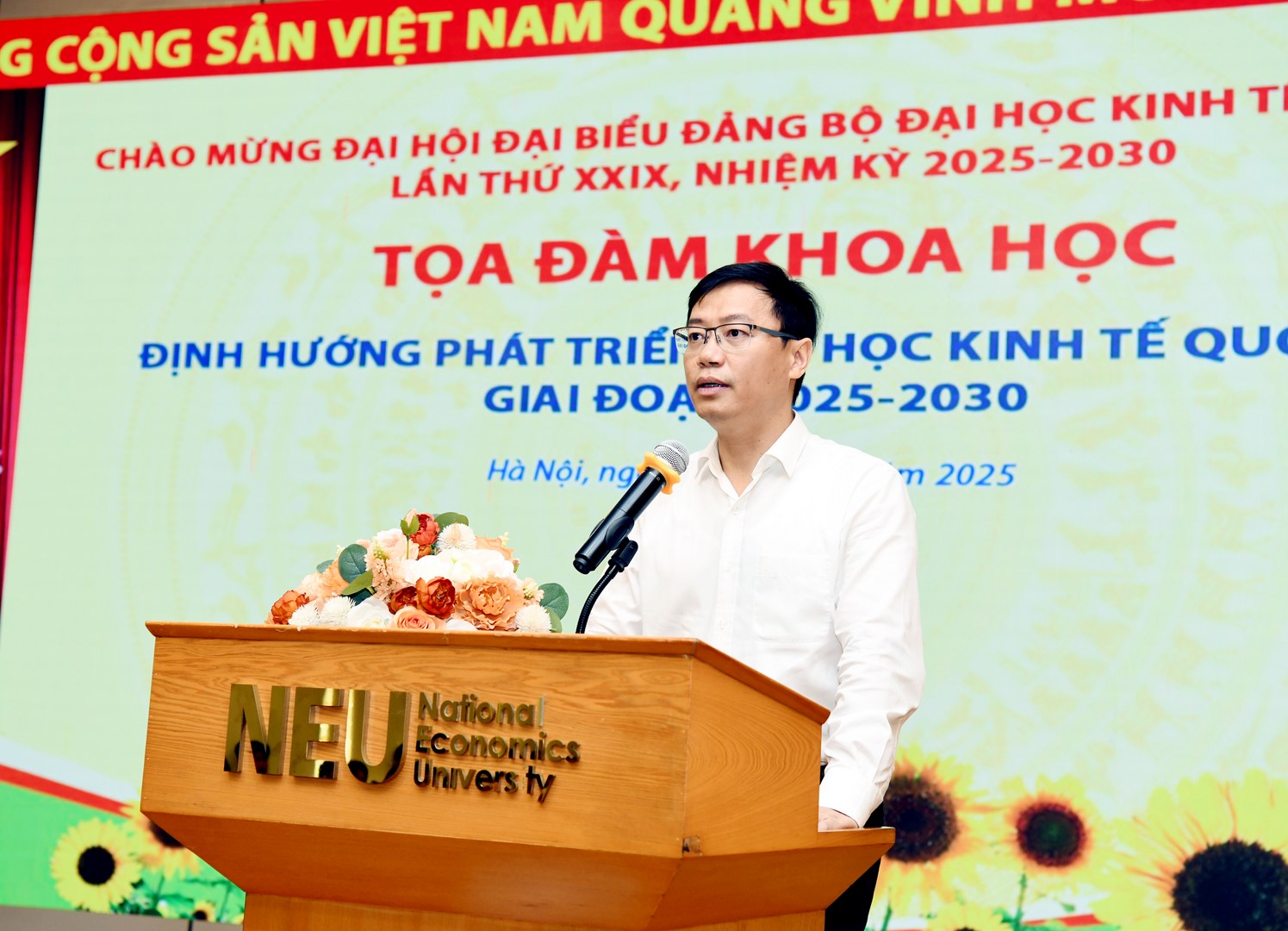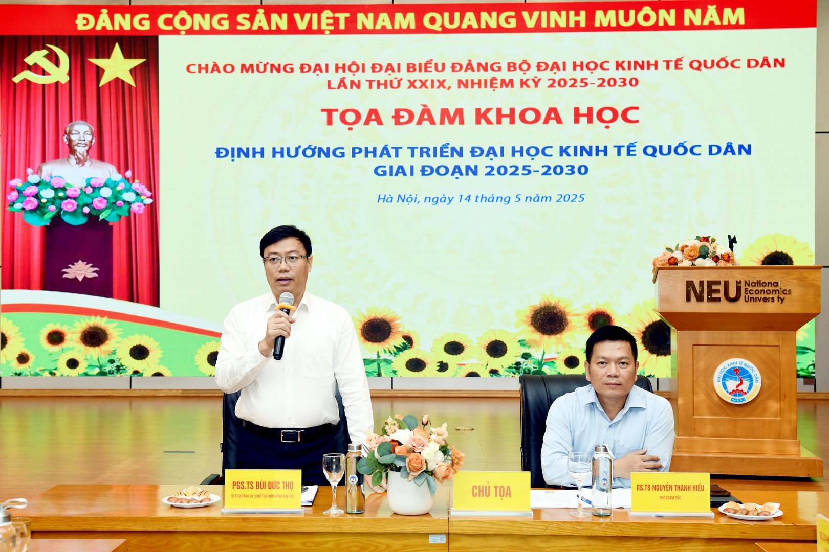 Sáng ngày 14/5/2025, tại Đại học Kinh tế Quốc dân đã diễn ra Tọa đàm khoa học với chủ đề: “Định hướng phát triển Đại học Kinh tế Quốc dân giai đoạn 2025-2030”, nhằm thu thập ý kiến đóng góp hoàn thiện Dự thảo Báo cáo chính trị trình Đại hội Đảng bộ Đại học lần thứ XXIX, nhiệm kỳ 2025-2030.