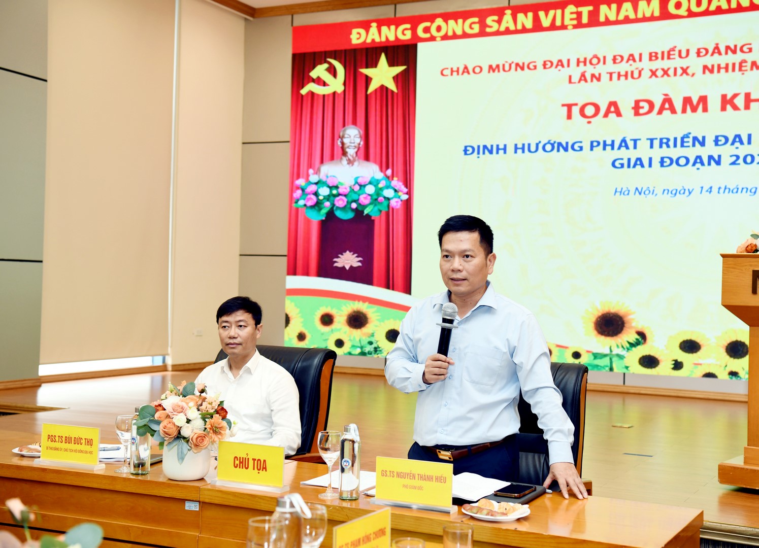 Tại Tọa đàm, các đại biểu đã tập trung thảo luận và góp ý về một số nội dung trọng tâm nhằm chuẩn bị tốt nhất cho Dự thảo Báo cáo chính trị trình Đại hội Đảng bộ Đại học lần thứ XXIX, bao gồm: (1) Chiến lược phát triển, mô hình tổ chức và quản trị của Đại học và các đơn vị thuộc Đại học; chiến lược phát triển nguồn nhân lực giai đoạn 2025-2030; (2) Nâng cao chất lượng đào tạo, đổi mới chương trình, phương thức và áp dụng công nghệ đào tạo trong bối cảnh mới. (3) Phát triển hoạt động nghiên cứu khoa học và công nghệ của Đại học gắn với thực hiện Nghị quyết 57-NQ/TW ngày 22/12/2024 của Bộ Chính trị về đột phá phát triển khoa học, công nghệ, đổi mới sáng tạo và chuyển đổi số quốc gia. (4) Xây dựng Đại học thông minh; Ứng dụng công nghệ thông tin, trí tuệ nhân tạo trong đào tạo, nghiên cứu, quản trị, điều hành của Đại học. (5) Chiến lược cải thiện và nâng cao vị thế xếp hạng của Nhà trường; Tăng cường kiểm định quốc tế và đảm bảo chất lượng bên trong. (6) Thu hút sinh viên quốc tế và tăng cường các chương trình trao đổi sinh viên với các Đại học ngoài nước; Thu hút giảng viên, nhà khoa học quốc tế tham gia các hoạt động đào tạo, nghiên cứu, tư vấn tại Nhà trường. (7) Hoạt động hợp tác với doanh nghiệp, khởi nghiệp, chăm sóc và hỗ trợ người học. (8) Chiến lược truyền thông, nhận diện thương hiệu và quảng bá hình ảnh của Đại học. (9) Tăng cường năng lực tài chính và đổi mới cơ chế quản lý tài chính đáp ứng yêu cầu phát triển Đại học; cải cách phương án trả lương và nâng cao thu nhập cho viên chức, người lao động. (10) Chiến lược mở rộng không gian và cơ sở vật chất của Đại học đáp ứng yêu cầu của các phương thức tổ chức đào tạo mới.