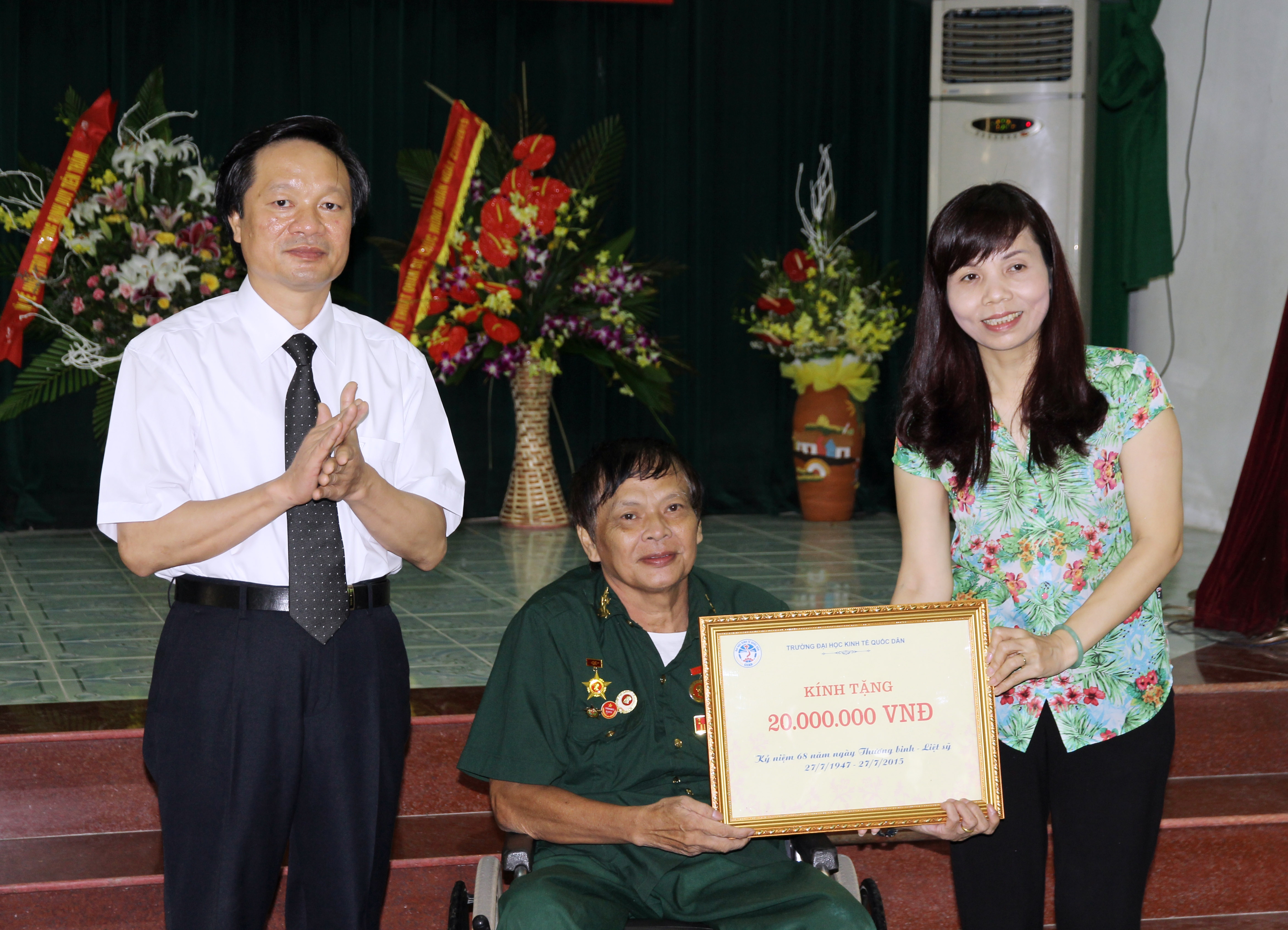 Nhân kỷ niệm 68 năm Ngày Thương binh – liệt sĩ (27/7/1947 – 27/7/2015), ngày 26/7, đoàn đại biểu trường Đại học Kinh tế Quốc dân do PGS.TS Trần Thị Vân Hoa – Phó Hiệu trưởng; TS. Nguyễn Hữu Đồng – Chủ tịch Công đoàn trường; PGS.TS Trần Quý Liên – Phó chủ tịch Hội Cựu chiến binh; ThS Bùi Đức Dũng – Trưởng Phòng Tổng hợp và các đồng chí cán bộ của các phòng ban, đại điện Đoàn thanh niên đã đến thăm hỏi, tặng quà thương binh, bệnh binh nặng ở Trung tâm Điều dưỡng thương, bệnh binh nặng Duy Tiên (Hà Nam).