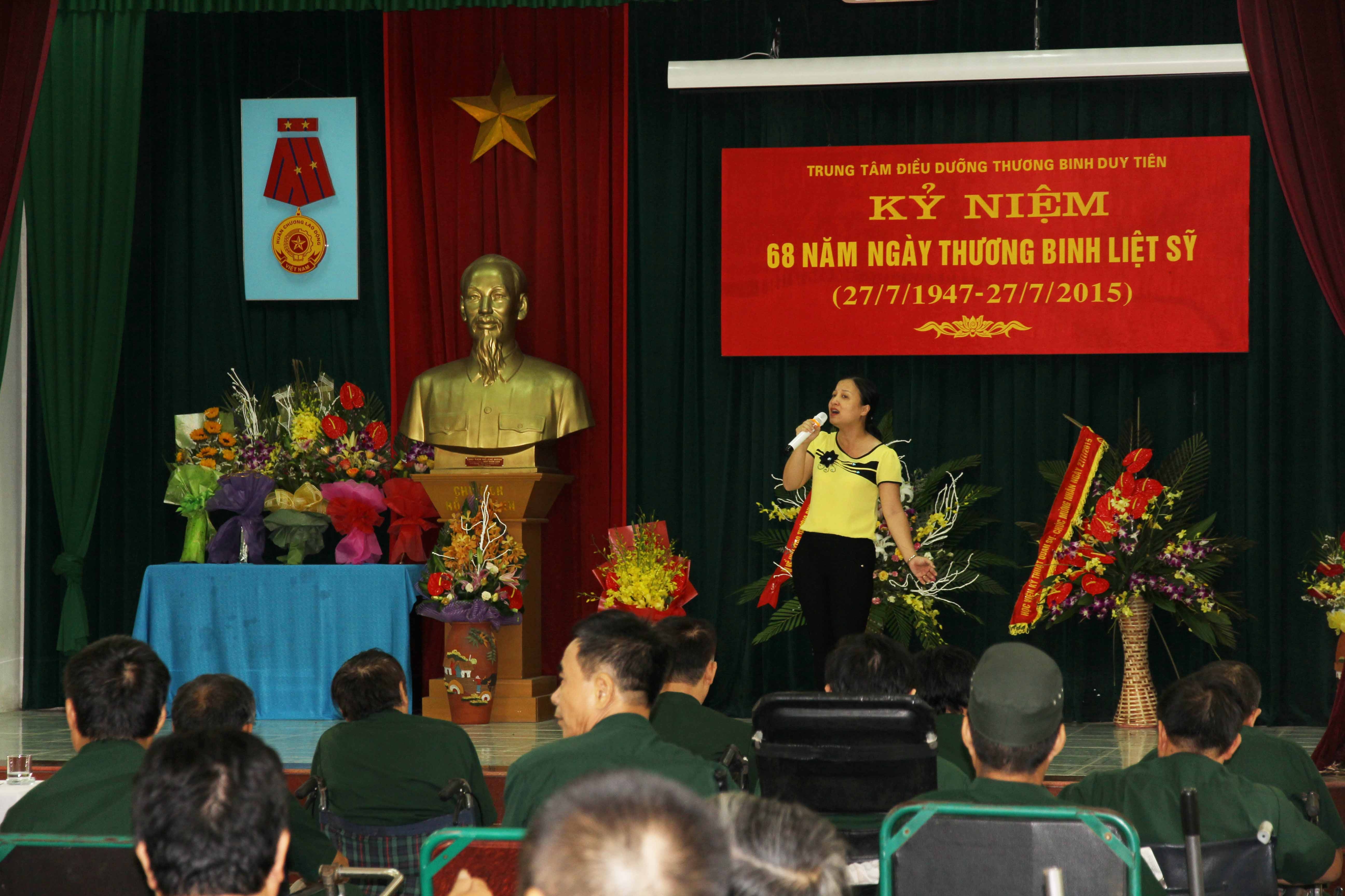Phát biểu tại chương trình, PGS.TS Trần Thị Vân Hoa – Phó Hiệu trưởng đã thay mặt lãnh đạo, tập thể cán bộ, giảng viên, công nhân viên, sinh viên nhà trường gửi lời tri ân, lời thăm hỏi ân cần sâu sắc, những tình cảm chân thành tới các đồng chí thương binh, bệnh binh đang được chăm sóc, phụng dưỡng tại Trung tâm Điều dưỡng Thương binh Duy Tiên. PGS.TS Trần Thị Vân Hoa chúc các thương bệnh binh tại trung tâm luôn sống vui khỏe, khắc phục khó khăn, vượt lên thương tật để sống có ích theo lời dạy của Bác Hồ "Thương binh tàn nhưng không phế".